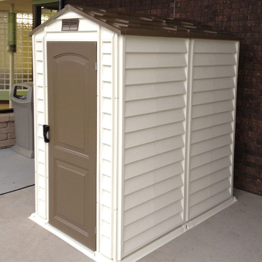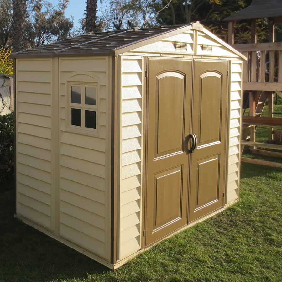 La gamme d’abris de jardin DURAMAX PVC 2 à 6m² est idéale pour tous ceux qui ont besoin d’un espace de stockage et un espace restreint. Son style unique avec portes et toiture marron en fait la gamme la plus appréciée actuellement. Renforcés par une structure en acier, ces abris en PVC sont très résistants aux intempéries et sont conçus pour durer.